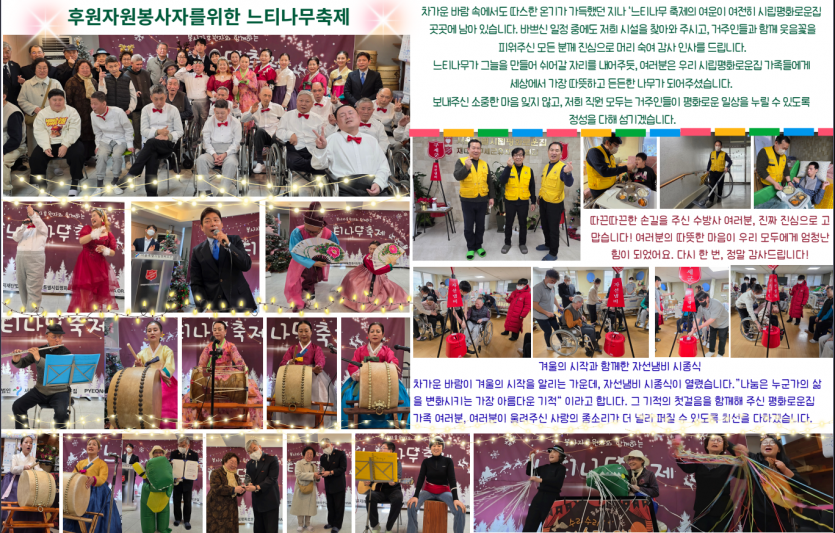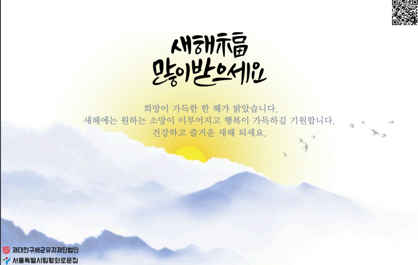 2026년 시립평화로운집 1월 후원감사편지 페이지 정보 작성자 장설궁 작성일 26-01-04 09:52 조회 181회 댓글 0건 본문 2026년 병오년이 밝았습니다. 지난 한 해 보내주신 배려에 깊이 감사드리며, 새해에도 건강과 평안이 늘 함께하시길 기원드립니다.병오년 새해를 맞아 가정에 행복이 가득하시고, 하시는 일마다 좋은 결실이 있기를 바랍니다. 이전글 다음글 목록
